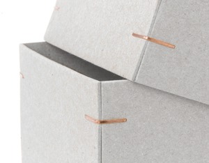 箱の四隅を針金で直角に留める、昔ながらの製法で作られた紙箱です。