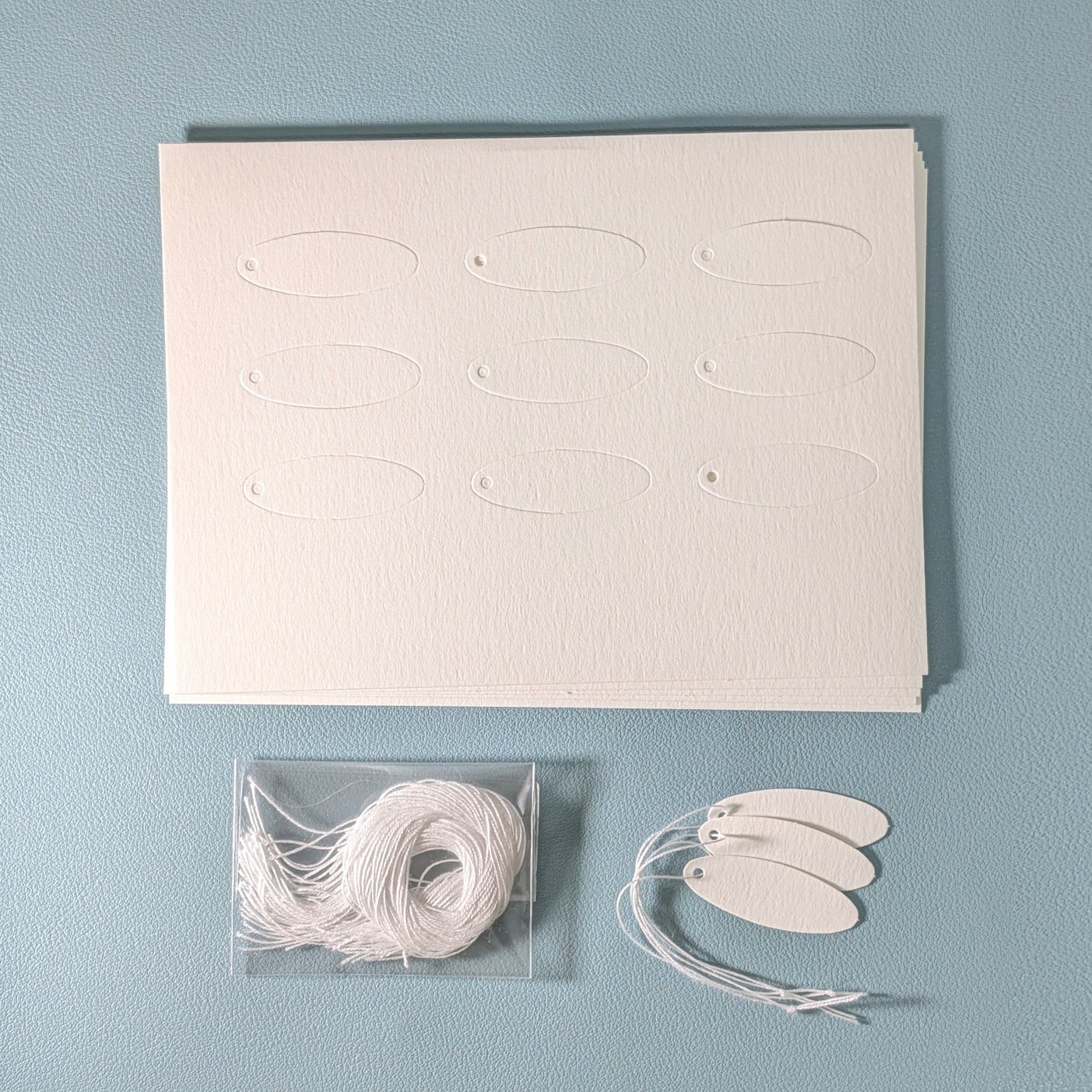 ■数量:値札54枚(1シート9片×5枚)と日本製綿糸、約55本のセット