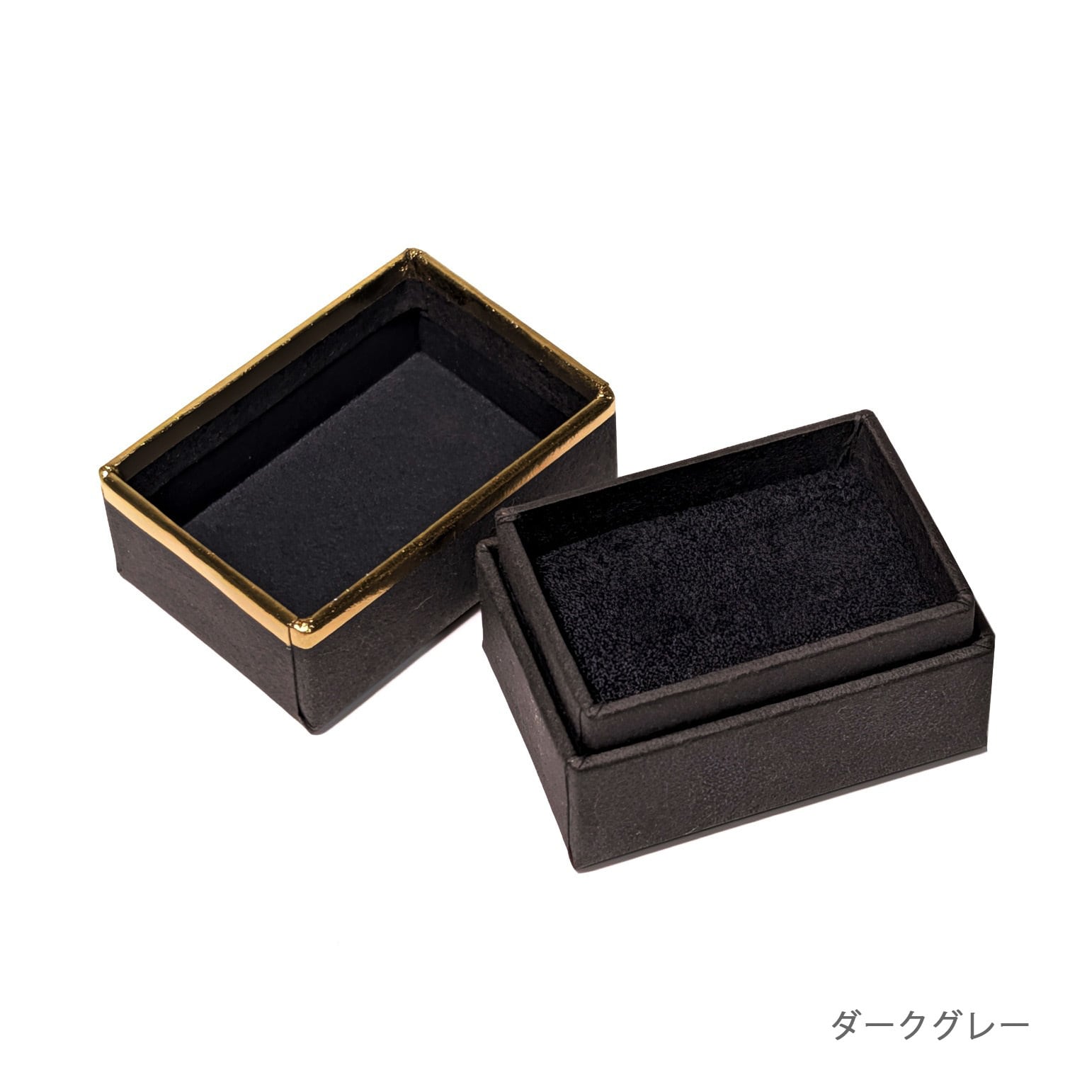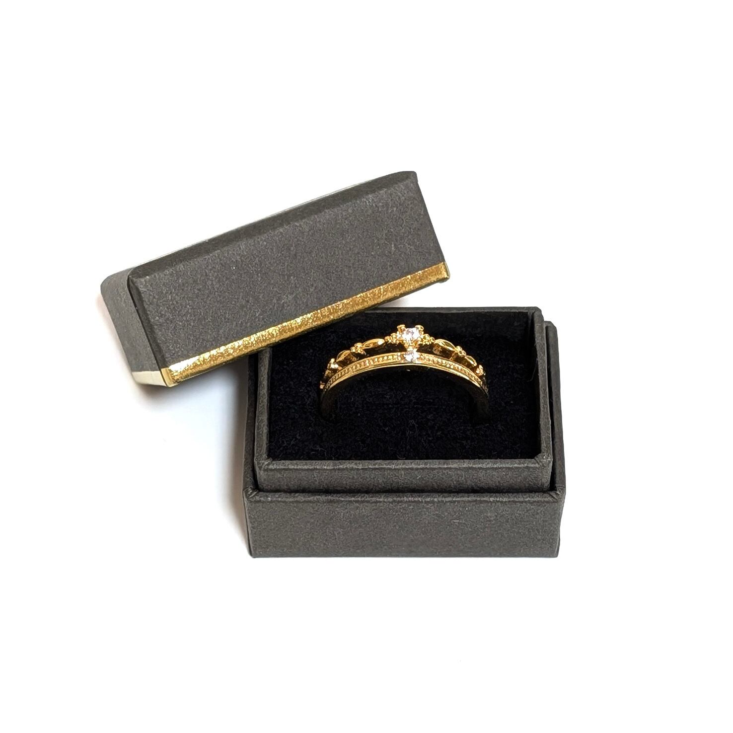 シックな雰囲気にゴールドの縁どりが華やかさを添える、高級感漂うリングケース です。