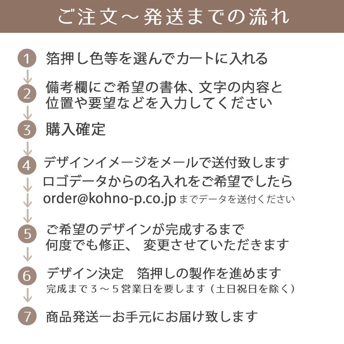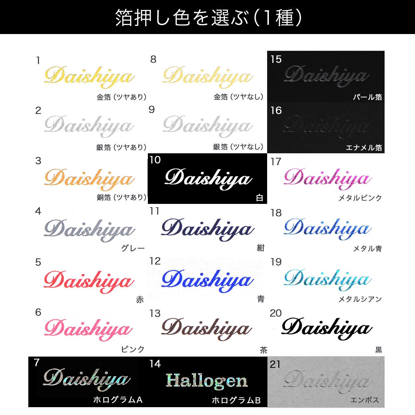 ★備考欄にご希望の書体と箔押しの内容、ご要望を入力して下さい。