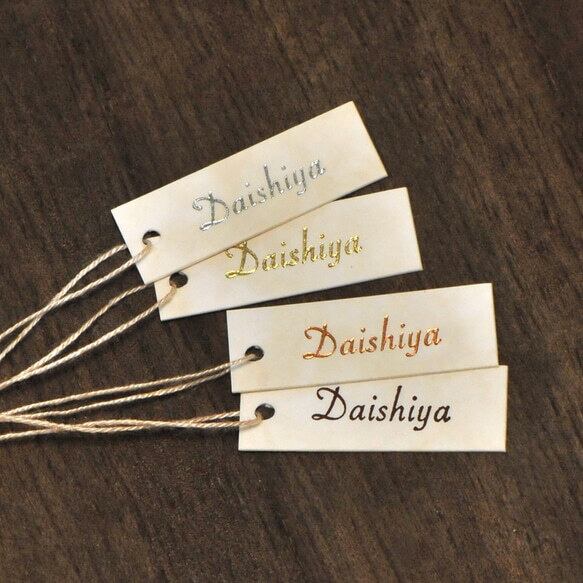 箔押しは印刷やスタンプよりも高級感があり、本格的なショップのタグに仕上がります。