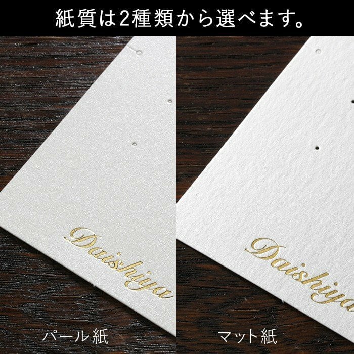 箔押しは印刷やスタンプよりも高級感があり、本格的なショップの台紙に仕上がります。