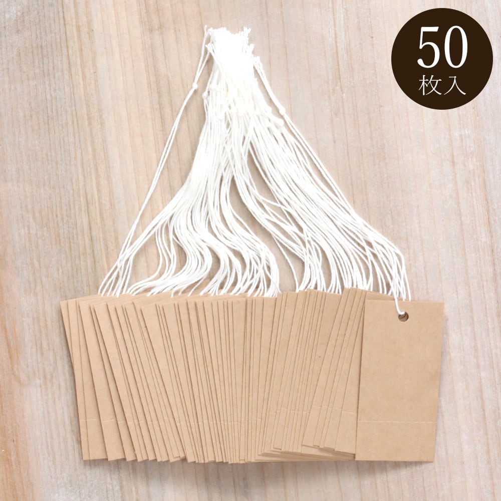 値札タグ ミシン目入り 下げ札 糸付きタグ クラフト紙 60×30mm 50枚 D106