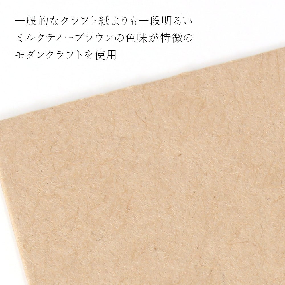 一般的なクラフト紙よりも一段明るい、ミルクティーブラウン系の色味が特徴のモダンクラフトを使用。