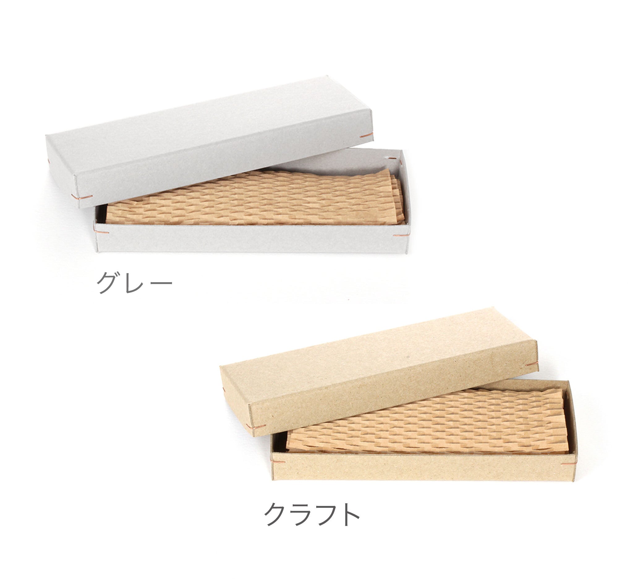 各色、クラフト紙製の緩衝材付。