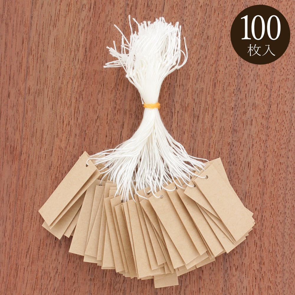 値札タグ L 下げ札 糸付きタグ クラフト紙 37×13mm 100枚 D105
