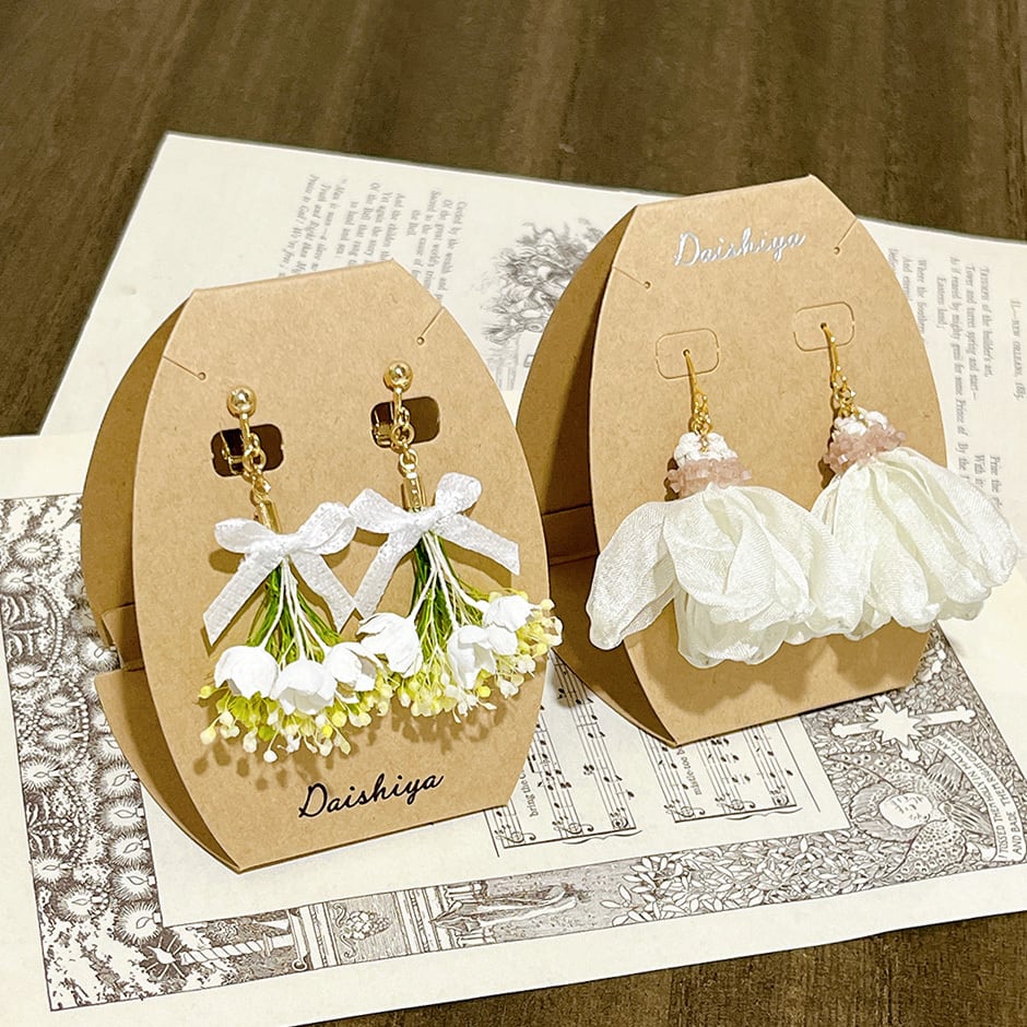 【名入れ箔押し】オリジナル台紙 卵ちゃん台紙 (クラフト)ピアス イヤリング ネックレス用 3way 100枚